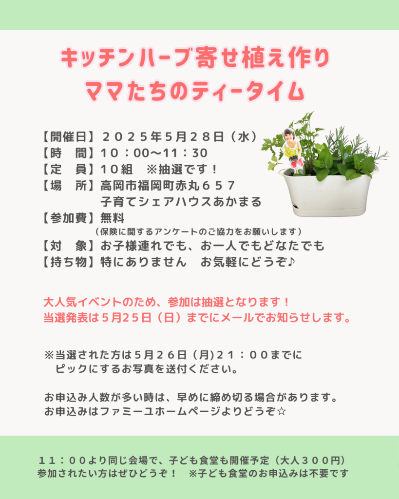 キッチンハーブ寄せ植え作り・ママたちのティータイム